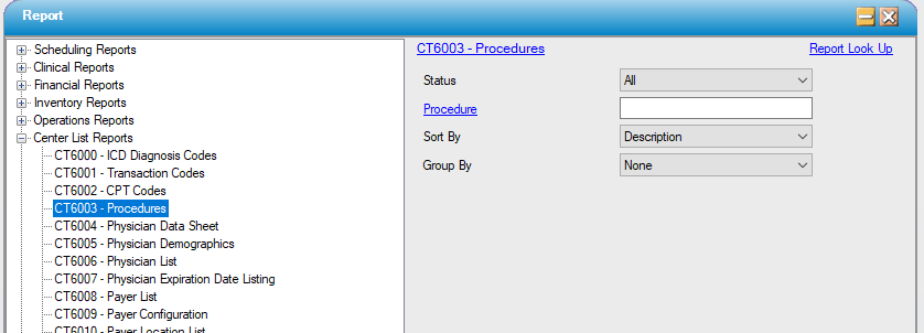 Track all Procedure codes entered into HST Practice Management. Pulls data from the Administration menu, from Procedures and Procedure Configuration.