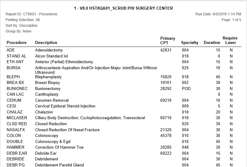 Require Laser: Displays a “Y” if the “Require Laser?” check box in Procedure Configuration is checked; otherwise displays “N”