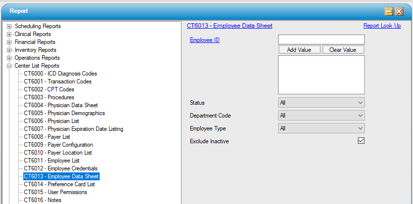 Report excludes Inactive employees by default; to report on all employees uncheck the "Exclude Inactive" check box.