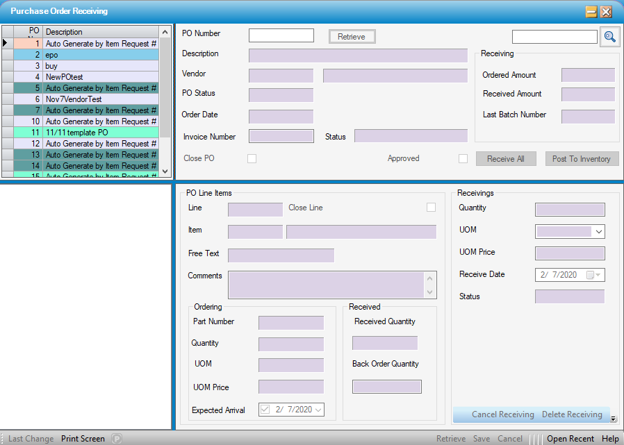 Close from PO Receiving form