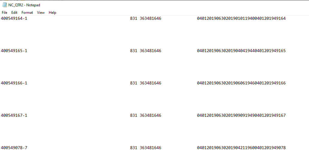 The vendor for this report is changing effective Q1 2020 . A new format has been established and dual reporting will be required from Q4 2019 through Q1 2020. The new format during the dual reporting period is North Carolina (NC2).
