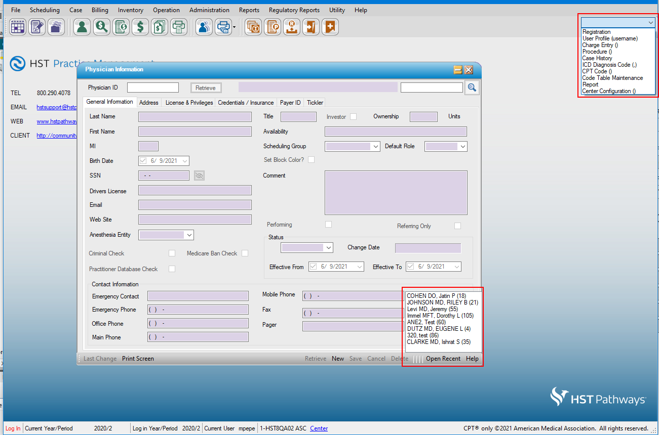 1. The top right corner of the HST Practice Management Home Page allows navigating to recently viewed forms.