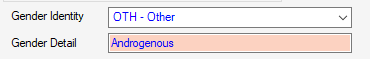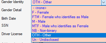 Gender Identity indicates how the patient identifies. The drop-down consists of seven standard identities, the sixth being "Other".