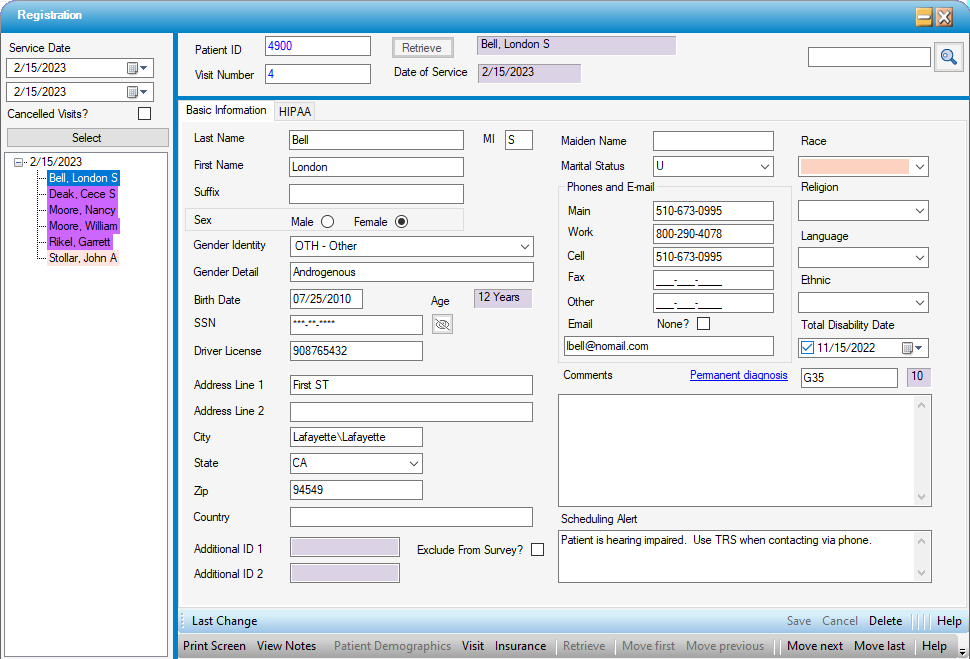 NOTE: Suffix does not show up on the Appointment Sheet nor Scheduling reports, so many centers elect to enter Jr or Sr following the last name.