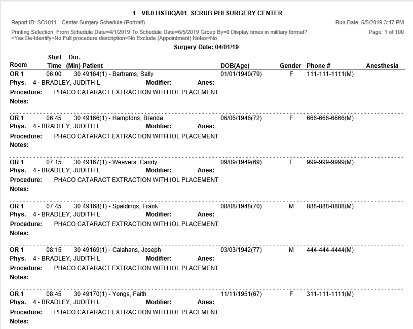 SC1011 - Center Surgery Schedule (Portrait)